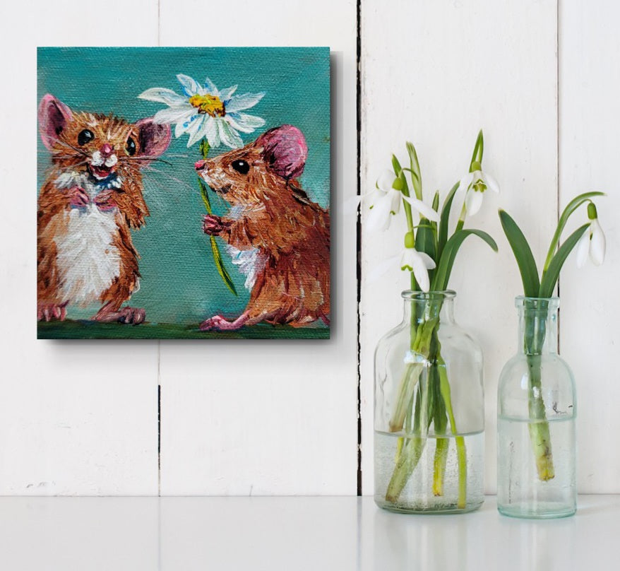 WILL YOU BE MY VALENTINE - I think she said "Yes"! 5 x 5" ACRYLIC PAINTING